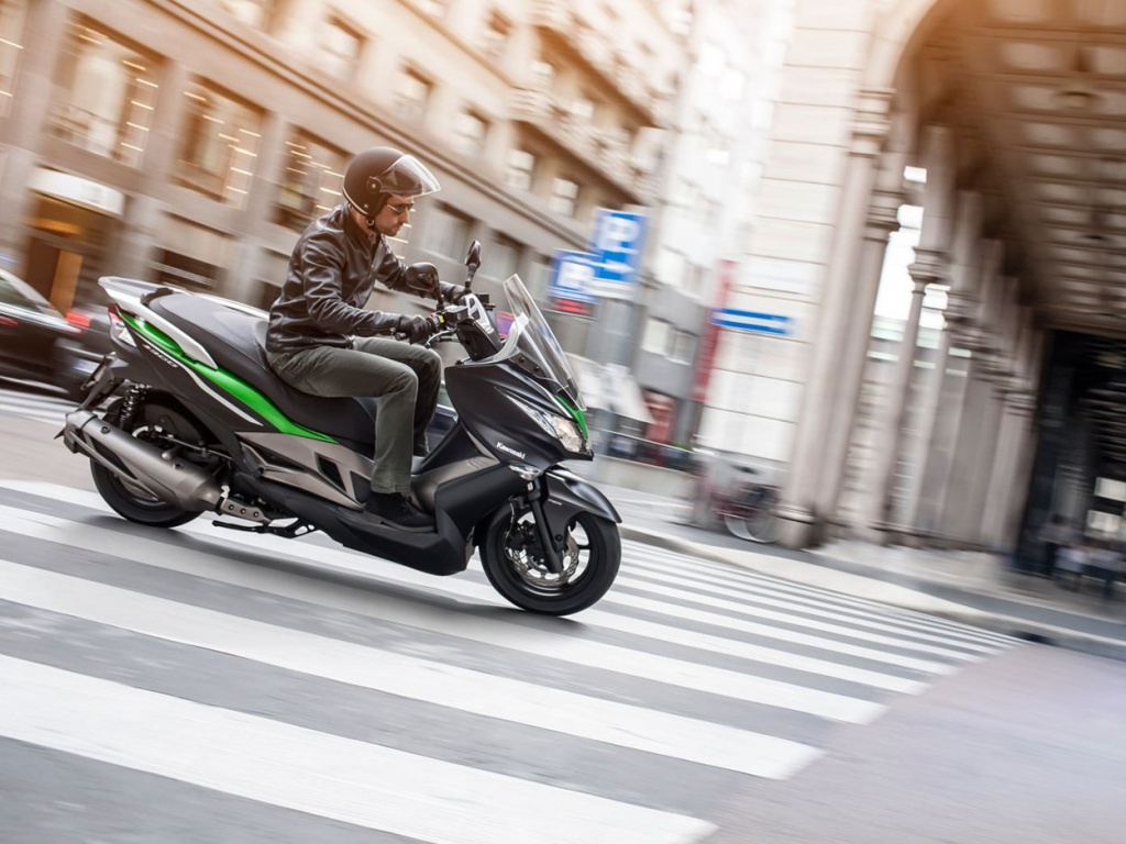 Комплектация Kawasaki J300 оснащена вариаторной коробкой передач, 0.3 литровым двигателем (28 л.с.). Стоимость данного скутера составляет 423 000 руб.
